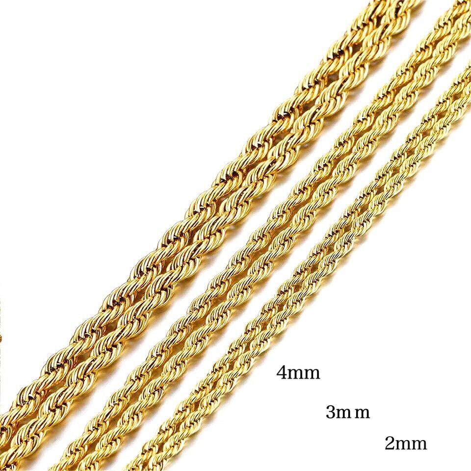 18K純金コーティング ステンレス編み込みロープ フレンチロープネックレスチェーン