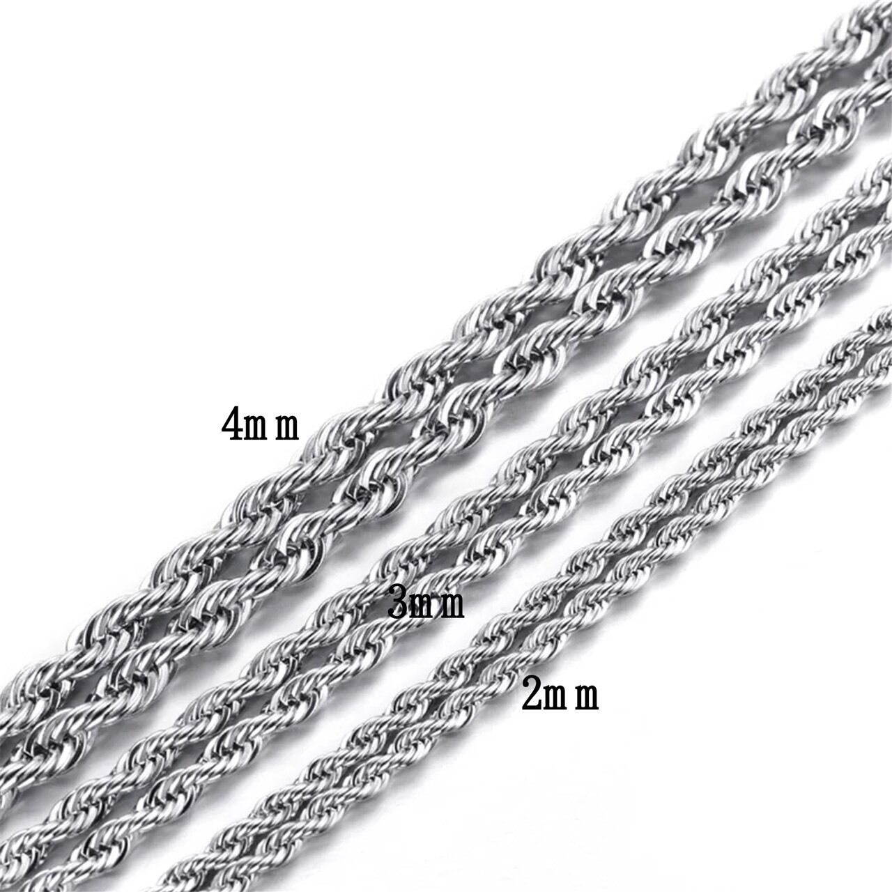 【6種類】選べるサイズ、ツヤあり、ねじるタイプサージカルステンレスフレンチロープチェーン