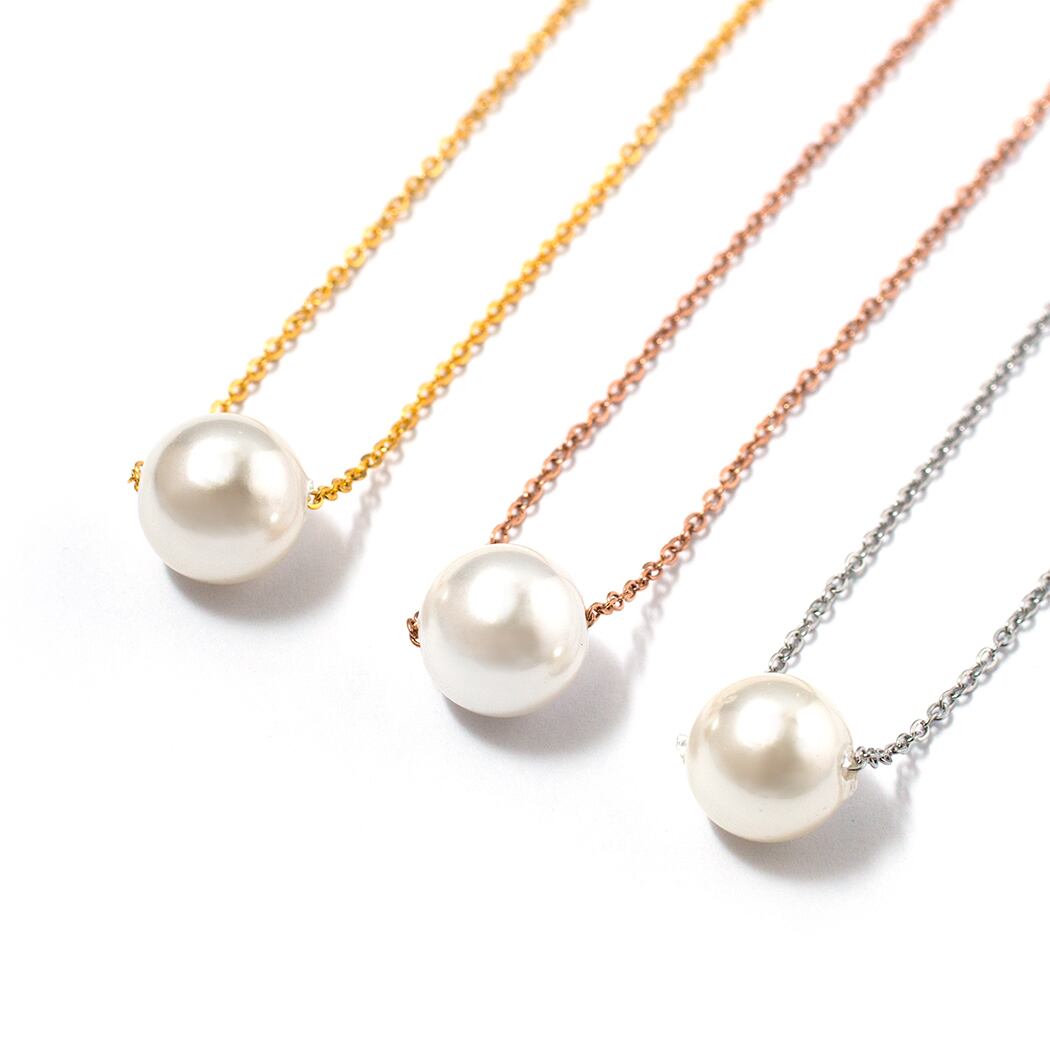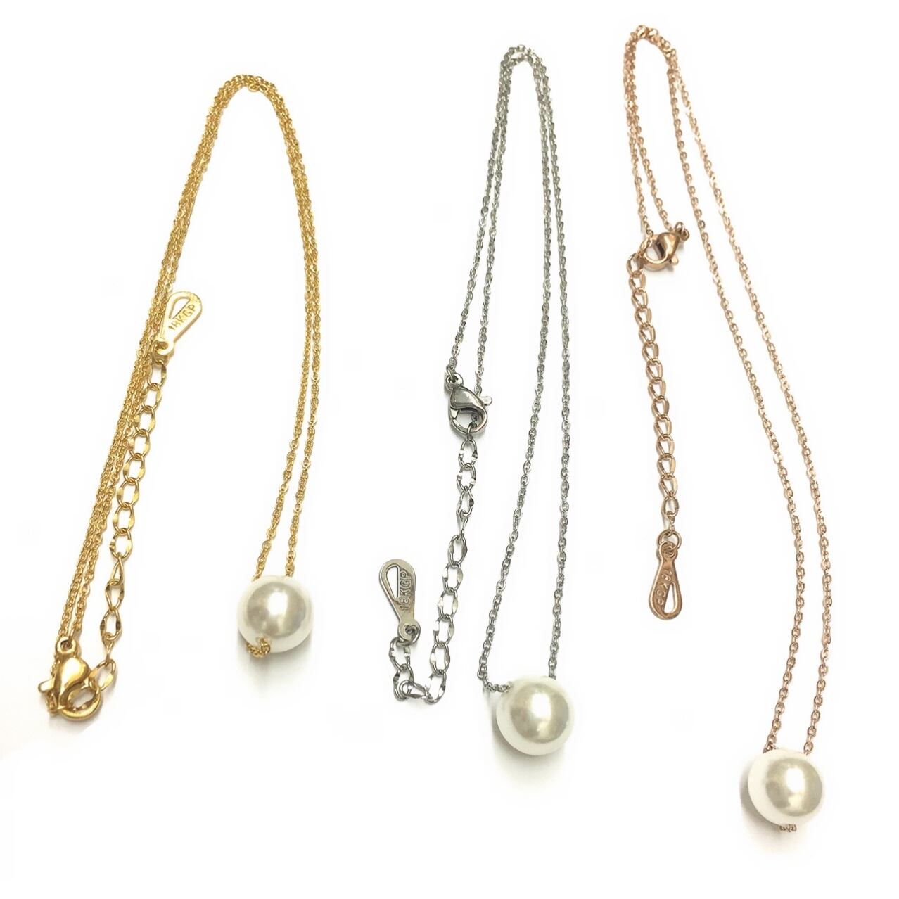 上品!ツヤあり天然パール18K金純金コーティングステンレスチェーンパールネックレス