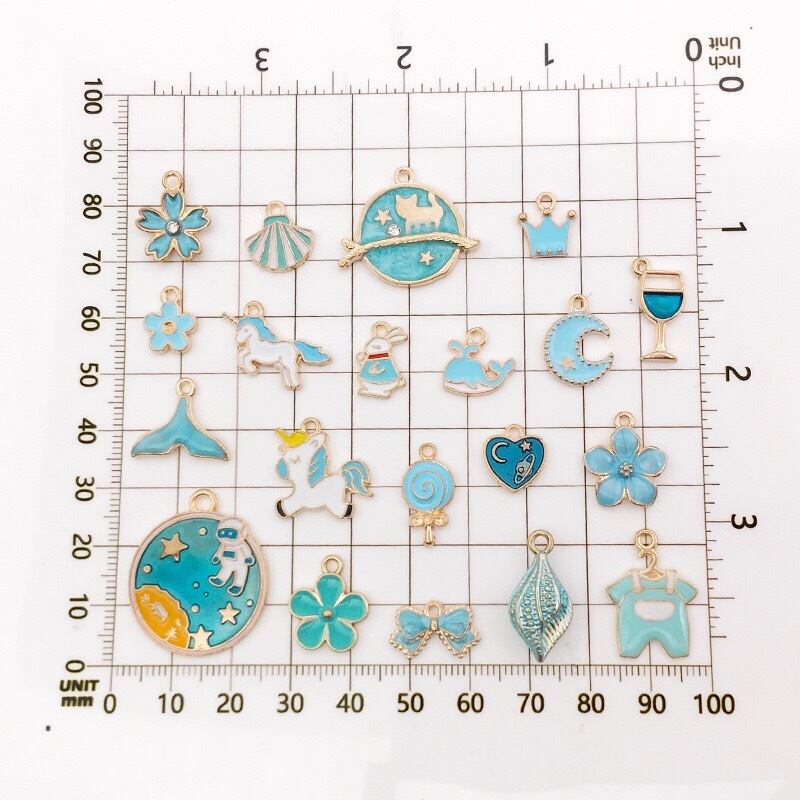 水色 チャーム カン付き ブルー ライトブルー アクセサリーパーツ アクセサリートップ ハンドメイド MIX アソート 31個セット
