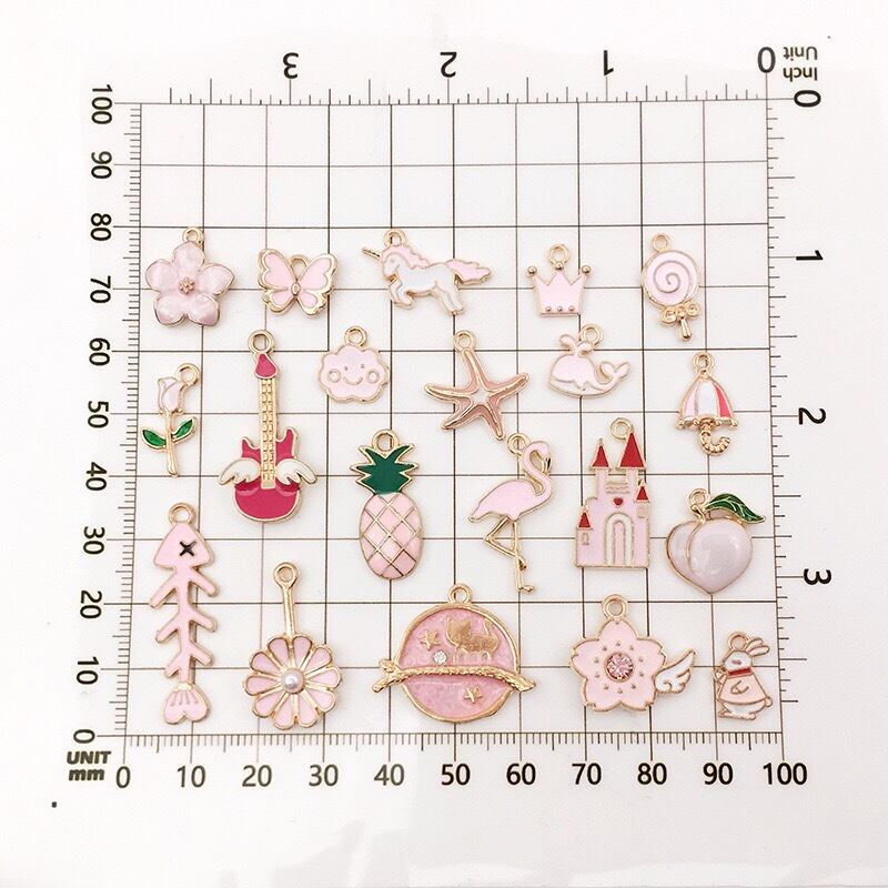 ピンクカラーを集めたチャームセットです。